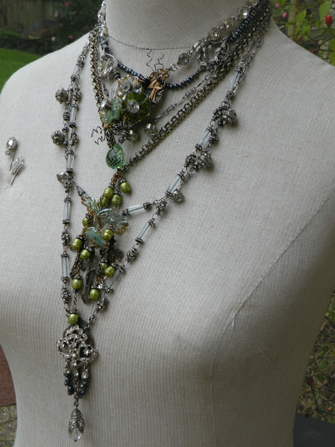 wow, your gorgeous work humbles me...there is so much going on and you did so many pieces with so much lovely detail, when I saw the first necklace with the bookmark and the broach, it reminded me of the Victorian era...the one with the cross just puts the whole thing over the top...lovely lovely...